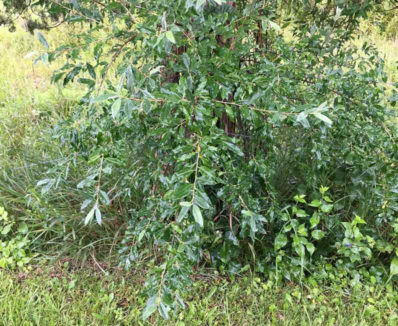 Autumn olive was introduced as an ornamental plant ideal for windbreaks. A deciduous shrub, about 20 feet, with narrow, dull green leaves atop silvery or brown rusty scales below. In the 1950’s it was endorsed as a great solution for creating wildlife habitats in areas disturbed by development. Birds and other wildlife who love the berries helped proliferate the spread of the now dreaded invasive species that shades and squelches native species. Isn’t it ironic how what is once adored can become despised?