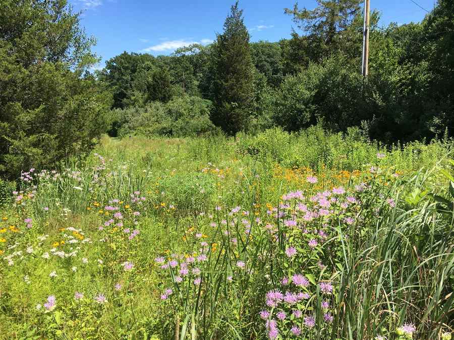 Among Dennis’s meadow are thriving natives such as goldenrod and monarda. Plus, the narrow-leaved mountain mint (Pycnanthemum tenuifolium) and Virginia mountain mint (Pycnanthemum virginianum) create clouds of white flowers all over his meadow; a lure for pollinators from July to September when in bloom.
