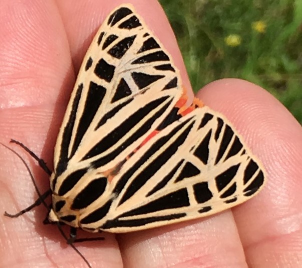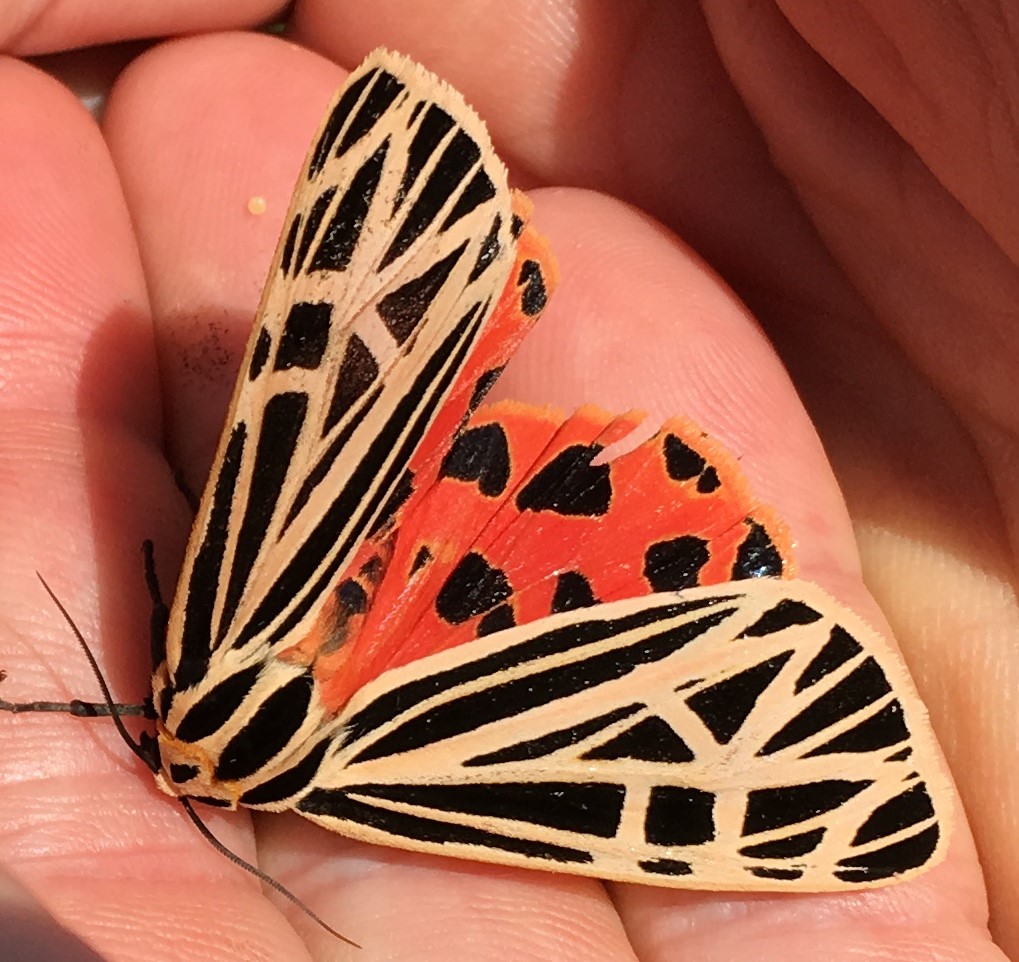A virgin tiger moth, Grammia virgo, was my favorite marvel during our walk. When her wings are closed, she’s a beautiful light beige with black zebra stripes. When she opens her two-inch wingspan, red with black polka dots reveals. Quite a fashion statement that will hopefully never go out of style. Garden Dilemmas? AskMaryStone@gmail.com and your favorite Podcast App