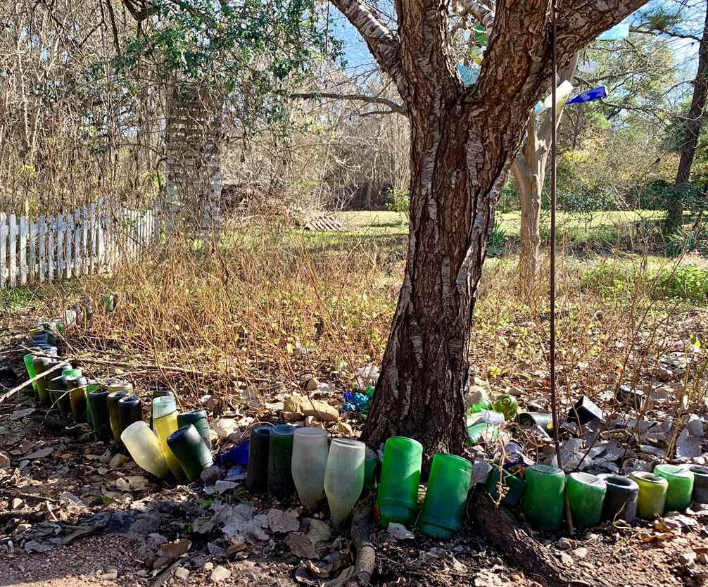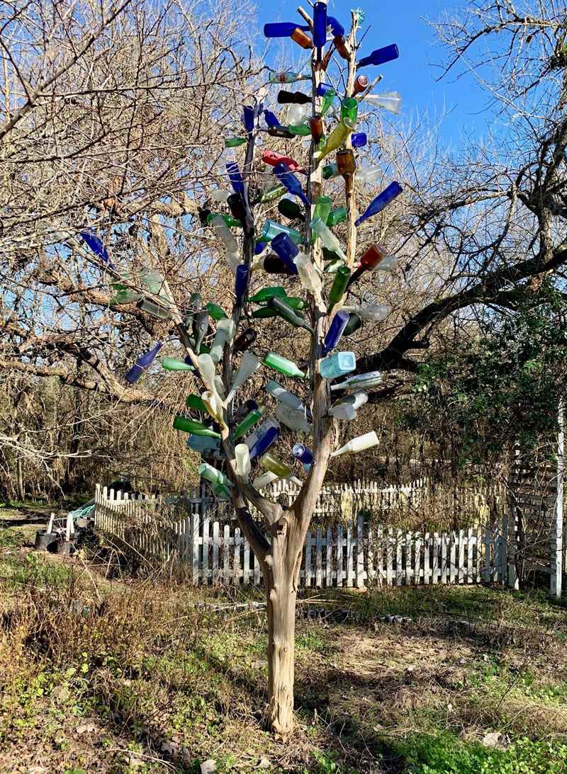 Happy 2019. I hope you all survived the fa la las and indulgences that can come with ringing in the new year. I’ll admit our recycle bin is overflowing with many trendy colors. We hosted Christmas Eve, so most of the bounty came from shared toasts; thank you very much. It makes me think of the bottle tree I saw while visiting Festival Hill in Round Top, Texas—an artful way to use recyclables, though it originated long ago. The sign explained, “One of the oddest superstitions from ancient folklore dates back to the glassblowers in ninth-century Africa. Several African tribes employed glass objects as talismans (magical objects) against evil spirits. Ever wonder why bottles moan in the wind?” Fascinating!