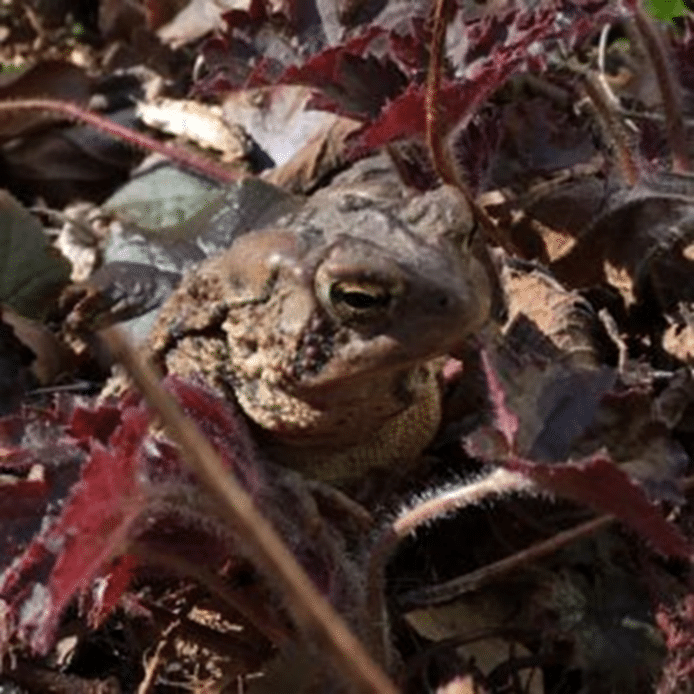 On their own, toads find cover under loose rocks and logs and nooks in the roots of trees. Then, come winter, they burrow below the soil to hunker down. They are amphibians and, therefore, extremely sensitive to pesticides and insecticides, so forgo nasty chemicals in your yard.