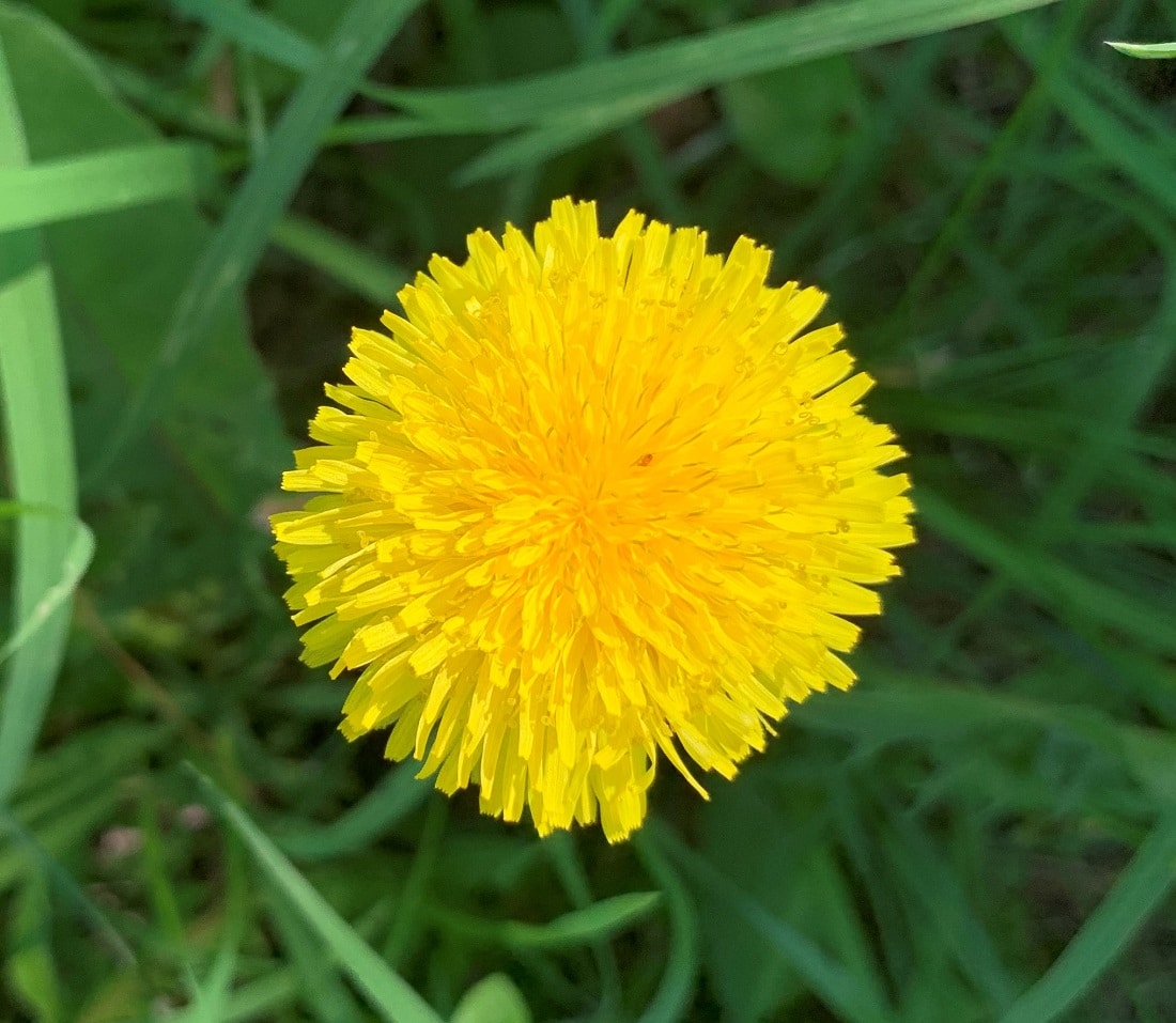 closeup of a yellow dandelion in lawn