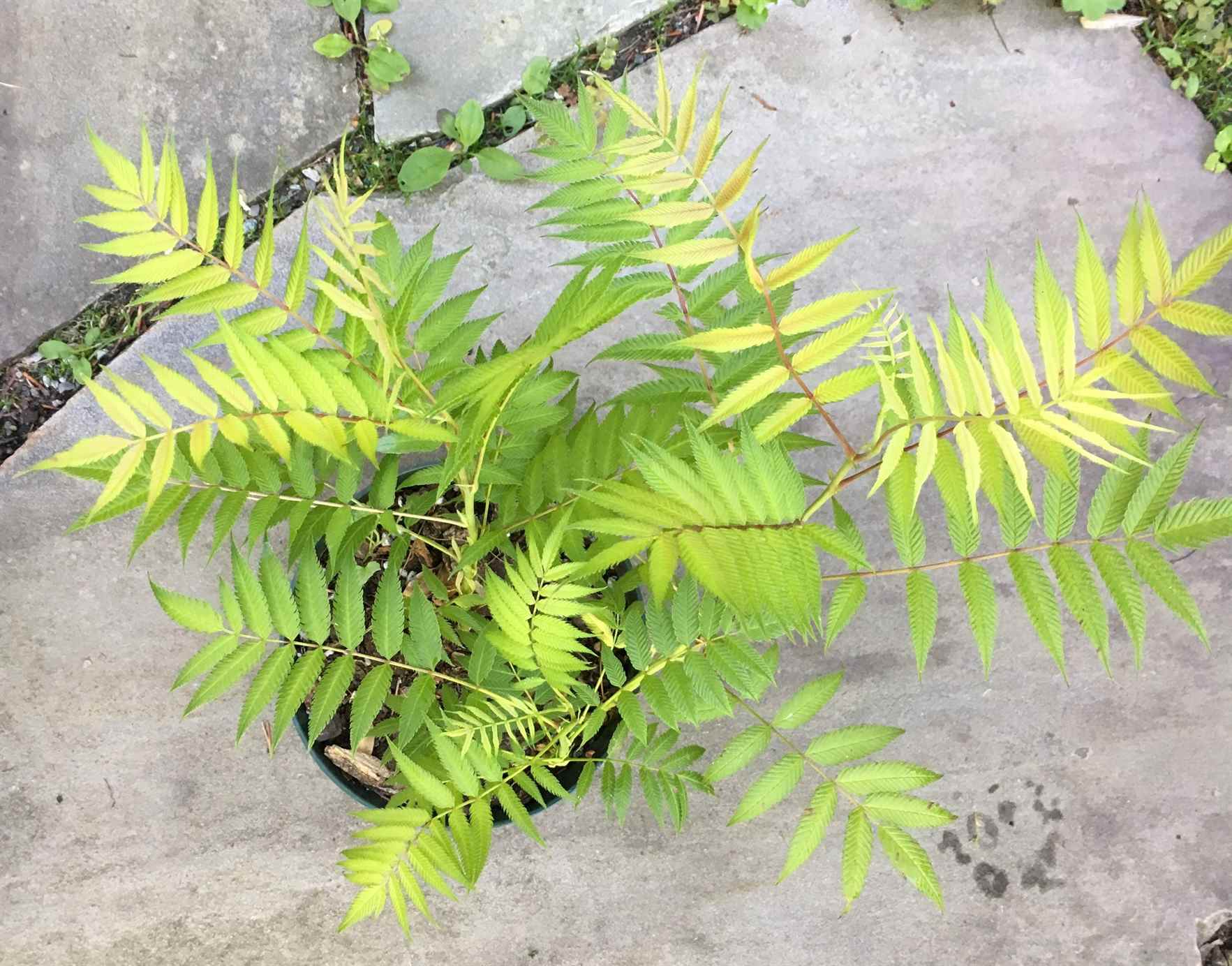 Along a grassy path was a swath of Ural False Spiraea. Ken warned, as charming as the reddish-tinged new leaves are, “Sorbus sorbifolia ‘Sem’ runs!” The leaves turn deep green in summer and flowers white in late June through July. According to Michael Dirr’s Manual of Woody Landscape Plants, indeed False Spiraea needs “considerable room.” It is ideal for covering an embankment, which is what I have planned for the starter plant Ken gave me dug up from his lawn.