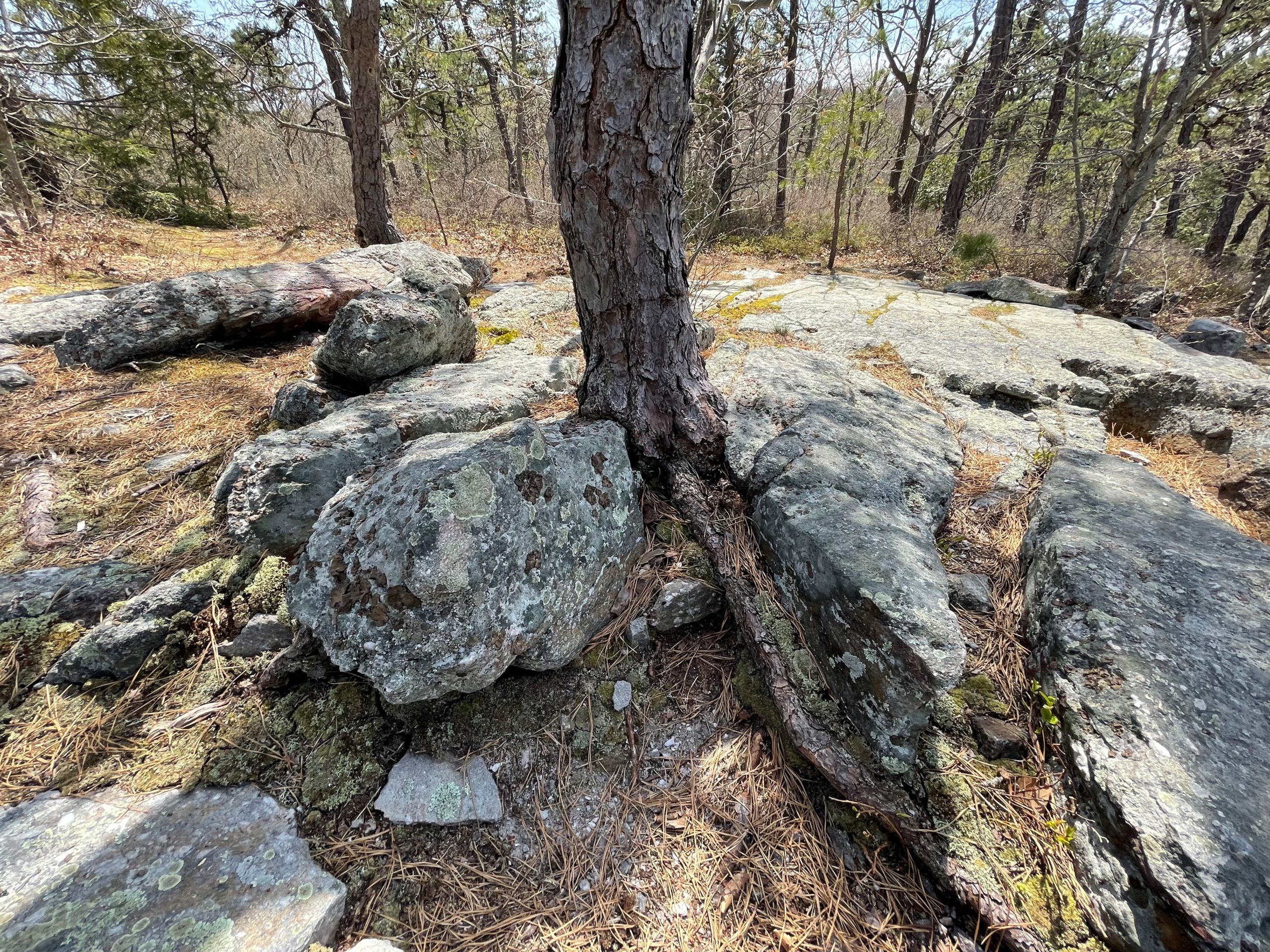 We stop at Indian Rocks, named after the Leni Lenape that lived in the area—with glorious views of the Pocono mountains. Scrub Pines (Pinus virginiana) rooted themselves in the massive outcropping. Though not typically used in landscapes, its scraggly form is appealing, as is its stunning resilience standing surefooted as the native Americans did long ago.