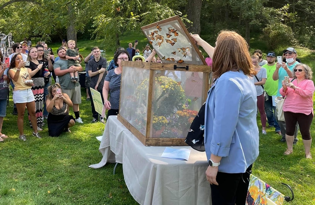 Back to Sunday’s event —It was an honor to sing along with Ken Roberts at the butterfly release ceremony hosted by Joseph T. Quinlan Bereavement Center and Abby Glenn, a cemetery for our beloved pets. And heartwarming to see the turnout, hear the names, and view the memorial wall of photos, including Miss Ellie Mae. And so, today, it seems fitting to adopt the new picture for our column header—the one most favored by all of you who kindly responded to my birthday reflection.