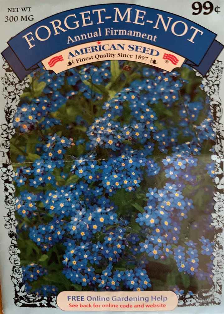 You can sow the annual seeds directly in the garden after the danger of spring frost, mid-May here. They’ll sprout in ten to fifteen days. Once they grow to three to four inches, thin them out so the plants are spaced about a foot apart. Some folks simply weed out the extras, but why not transplant them to another garden or along the wood line where they’ll love to spread. Forget-Me-Nots like moist soil and prefer part shade, though they don’t mind full sun if kept moist.