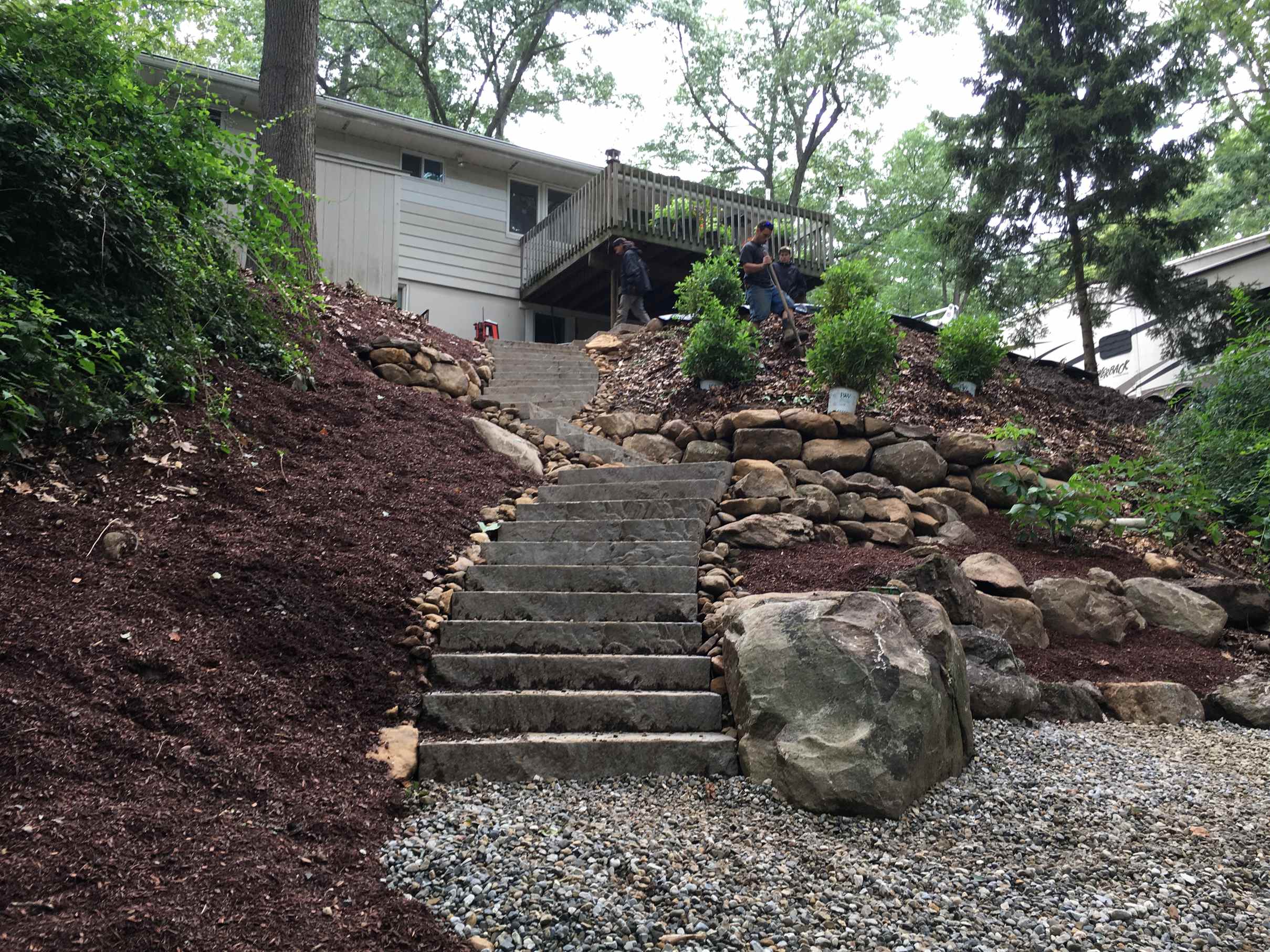 A hardscape solution for a steep hillside