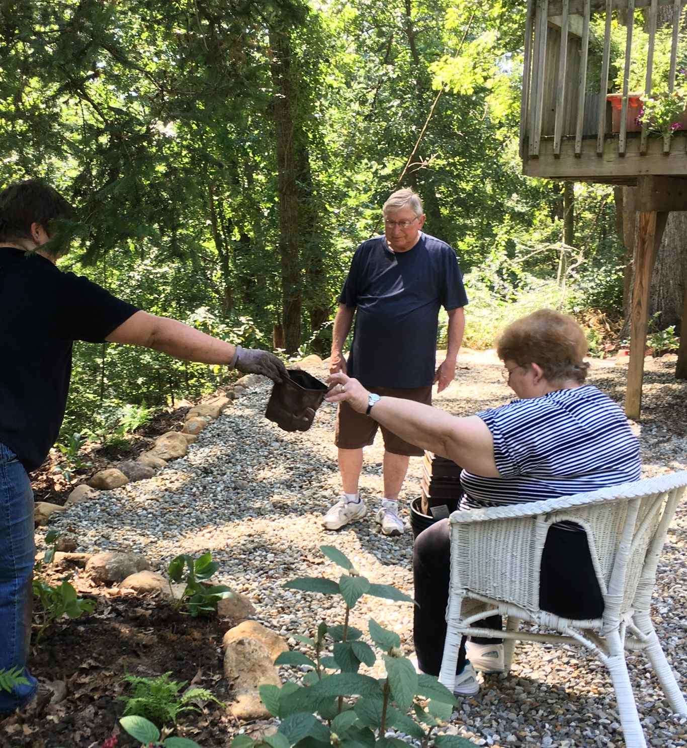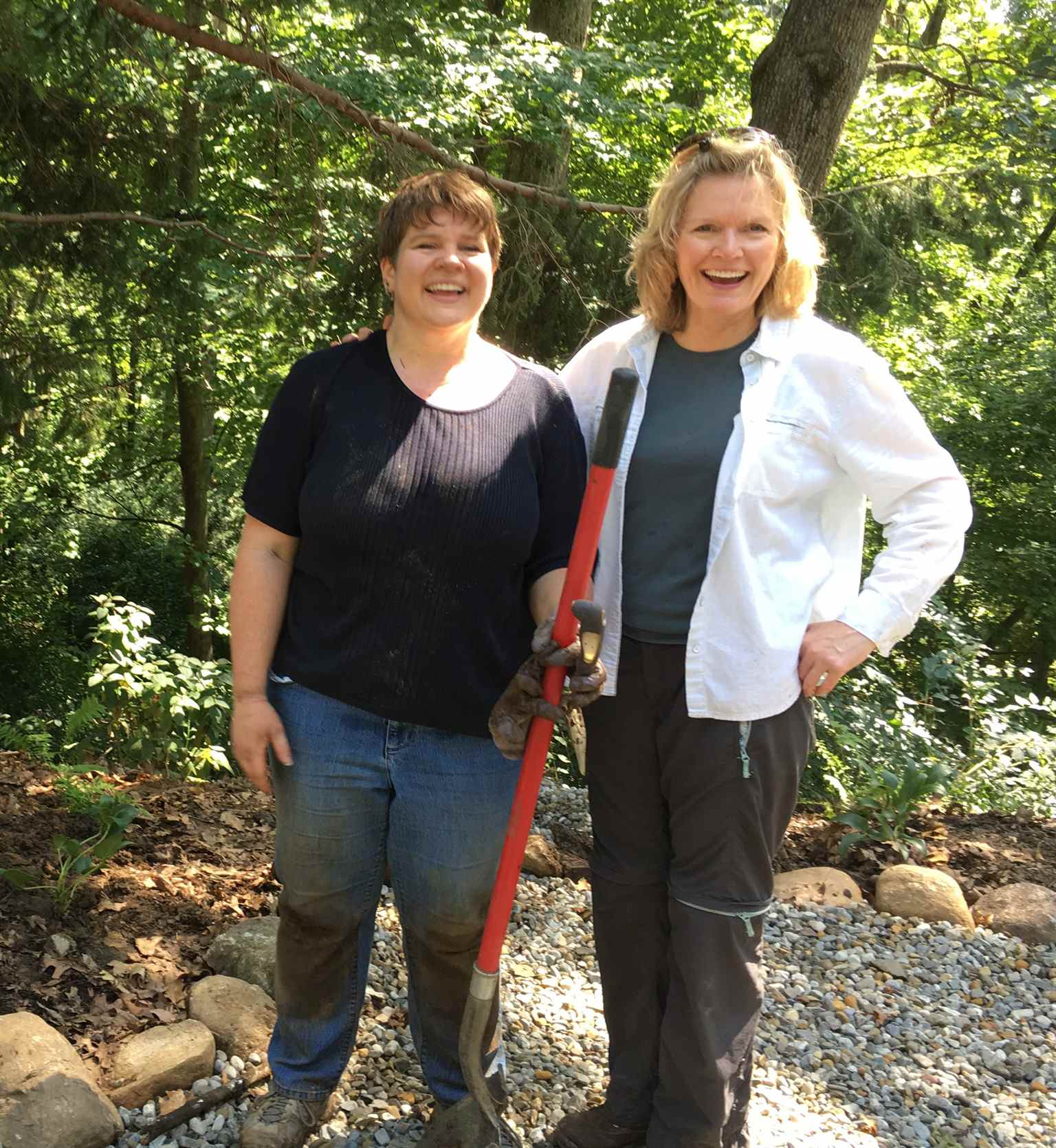 “Goat gardening,” I call it – planting the steep slope of Stephanie’s woodland garden leading down to the lower echelons of wilderness. I loved most witnessing her mom, Cec, guiding her from above, pointing to what goes where while passing the plants to Stephanie.