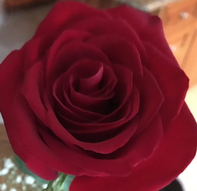 a birds eye view of a single cut rose flowerA personal note…