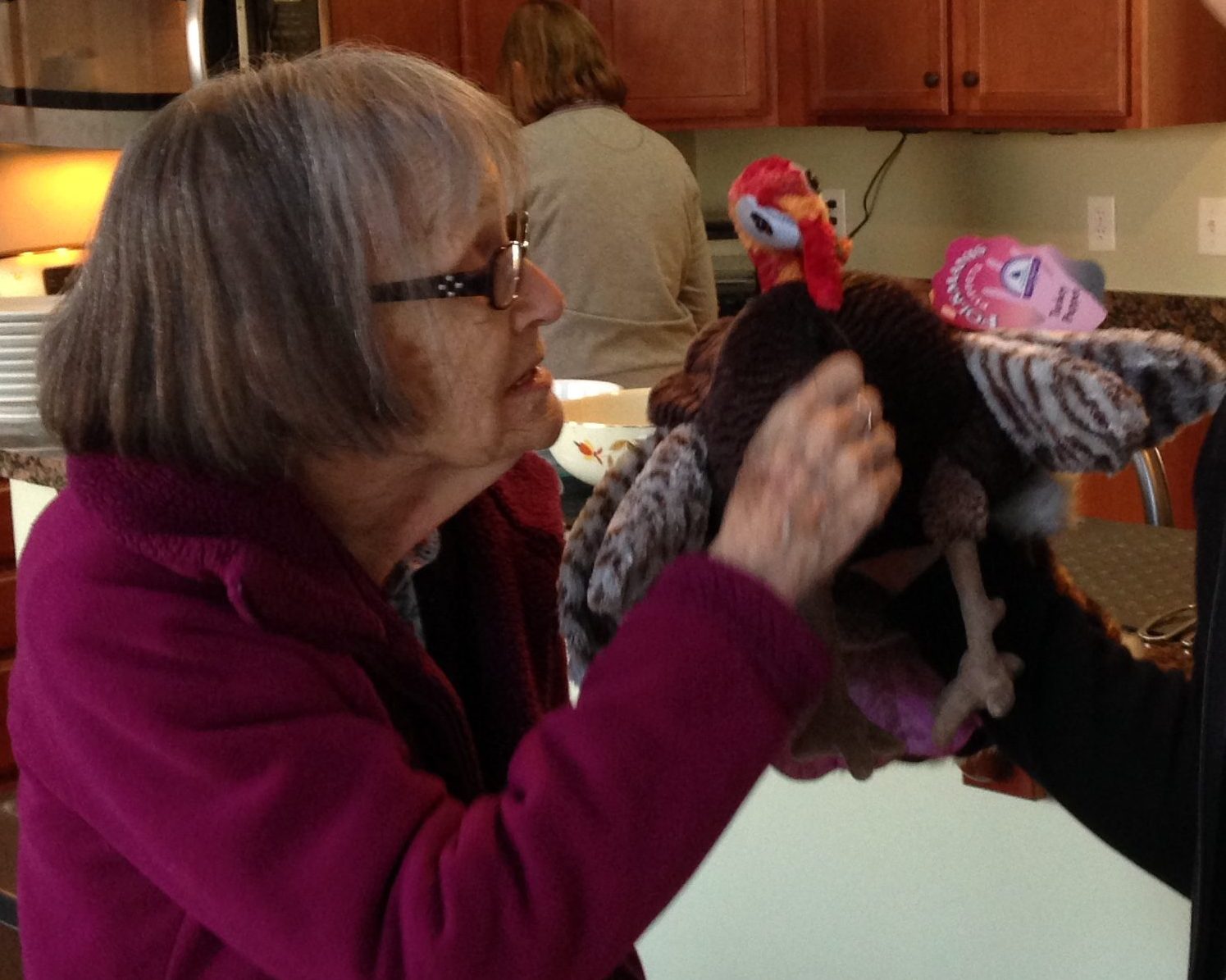 After we parked the car, I noticed a tier of wildlife puppets in the gift shop window. I purchased a turkey puppet from the same gift shop that became our “guest” during Thanksgiving three years earlier. At that time, Mom was well enough to enjoy the replica of a wild turkey, reminding her of those that roamed the dairy farm in upstate New York where she grew up.