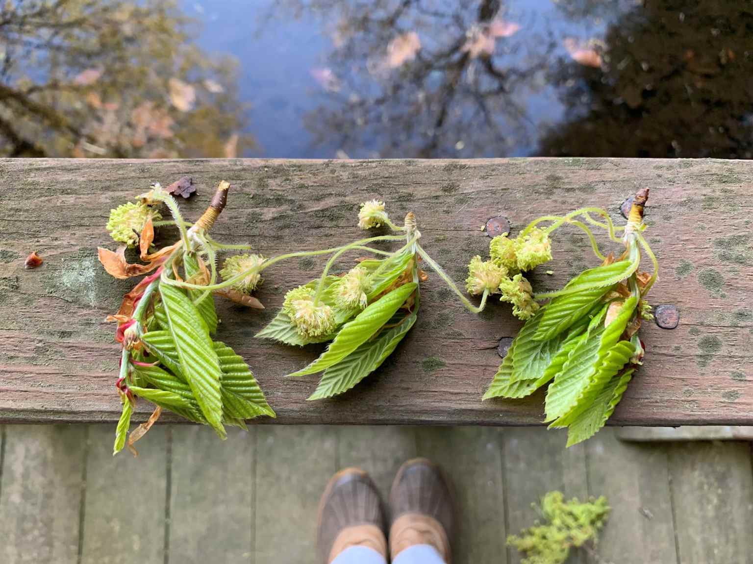 I’ve always wondered why there are tips of branches with baby leaves scattered about in the spring. We came upon clusters of emerging oak leaves at Camp Mohican in Blairstown on Easter afternoon. Then dozens of tiny mops of maple leaves along the road during a walk with Miss Ellie. Just yesterday, there were bunches of baby beech leaves on the footbridge crossing our pond. A Google search proves the culprit is squirrels, likely building nests, as evidenced by the sharp cuts on the stems. If squirrels drop a cluster of leaves, and rather than retrieve it, they chomp another branch tip to use for their nest. Talk about being wasteful.