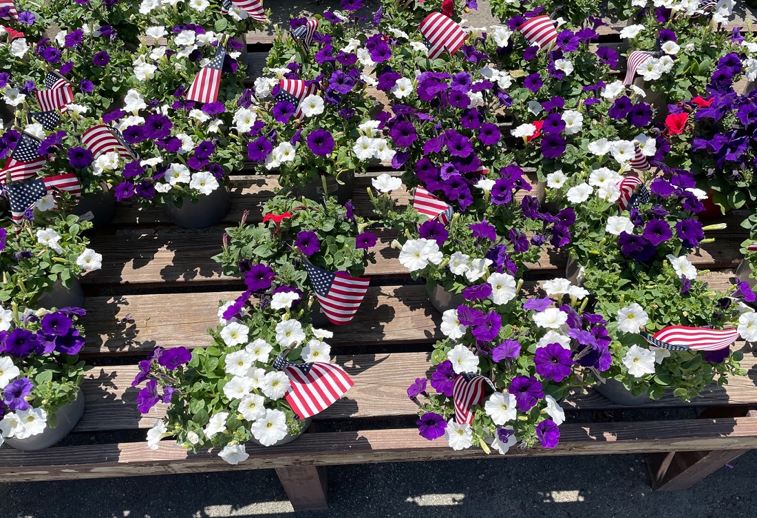 Memorial Day flowers used to decorate gravesites include red poppies based on the poem titled ‘In Flanders Fields’ depicting them growing between the graves of fallen soldiers*. Poppies don’t fare well as cut flowers, though, so red and white gladiolas shaped like swords symbolizing strength and integrity are often the flowers of choice. Red roses, carnations, blue delphiniums, and Gerber daisies also are popular in tribute to our heroes. Then there are the adored petunias.
