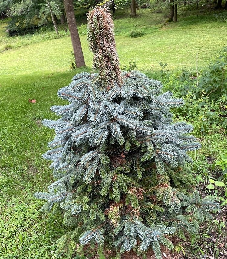 And an ambitious new top crown shot up as if to say, “My roots are free. I’m going to grow into a magnificent tree.” Baby Blue Eyes (Picea Pungens) is slow-growing to fifteen to thirty feet tall and fifteen feet wide.