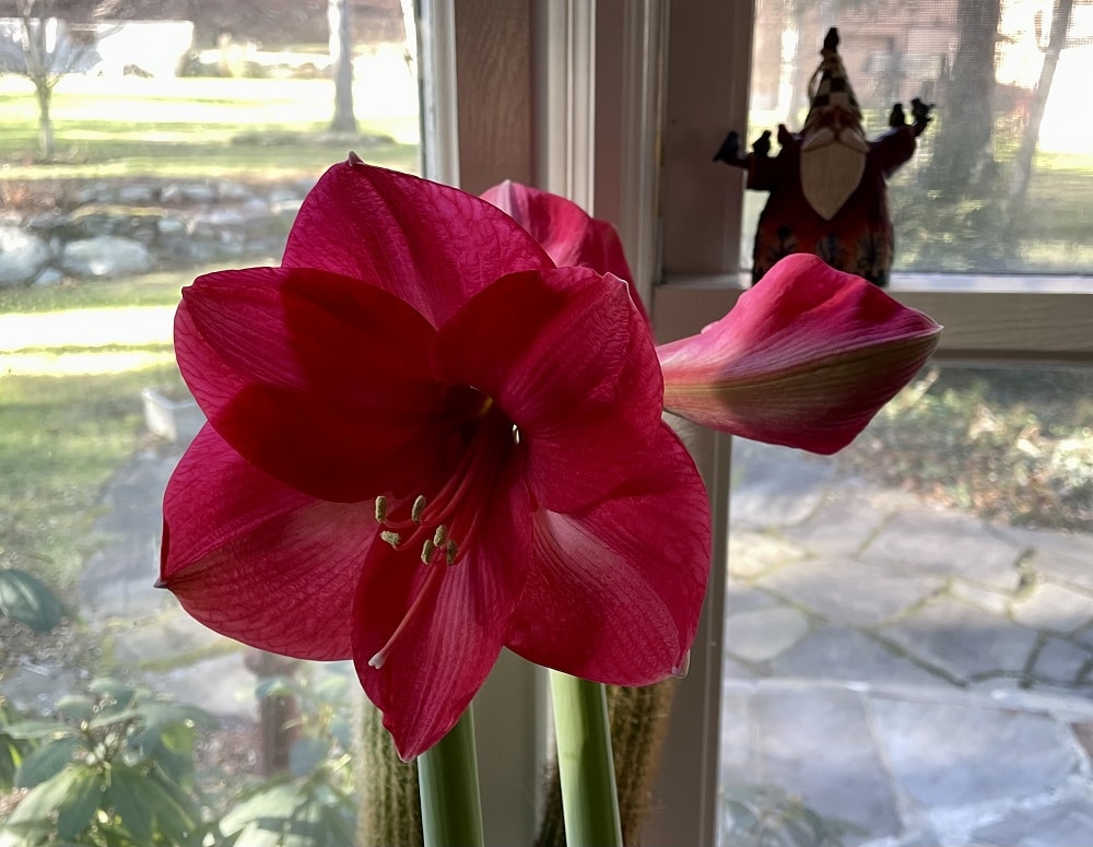 Serving cocktails to amaryllis works, too, though they tend to be less floppy, so the need for a drink isn’t as great.