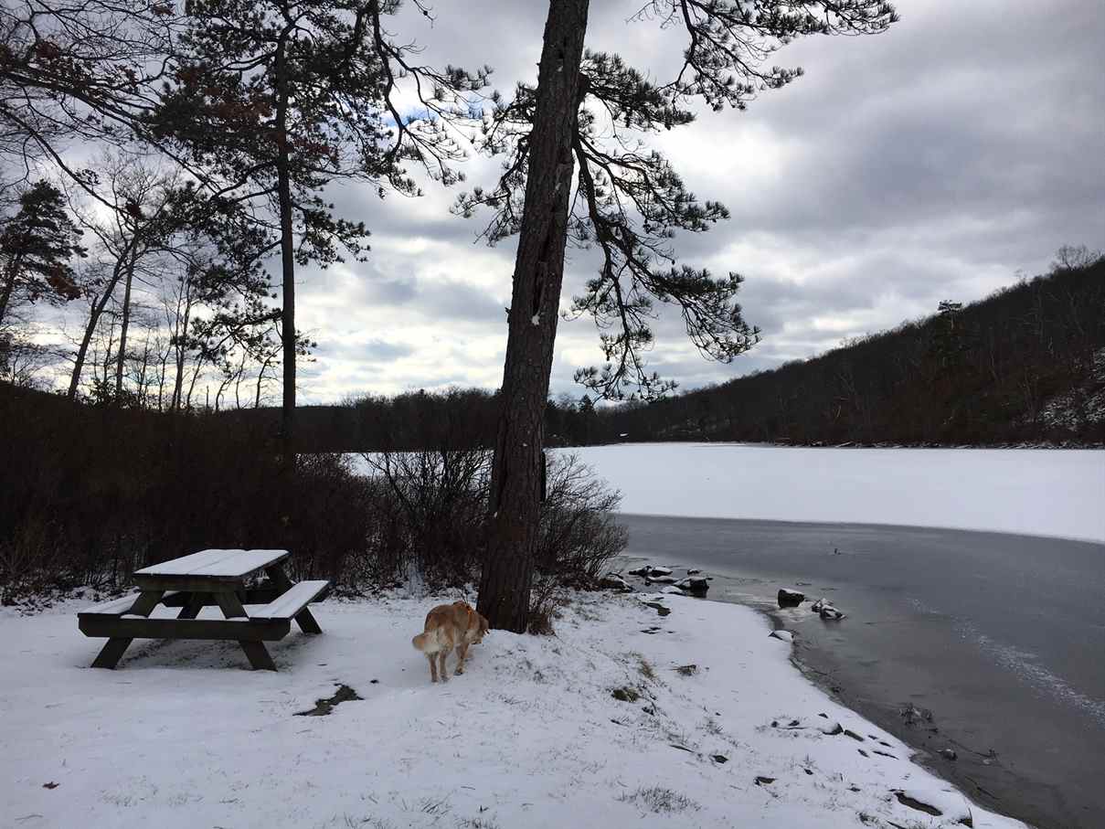 I thought you’d enjoy the view of Catfish Pond, Camp Mohican in Blairstown NJ, on Christmas Day. A day we woke to an inch of frosting not predicted. What a glorious surprise! The frigid temps added to the frosty feeling. Some of you know about my passion for the briskness of frozen nose hairs and squeaking snow, especially while grabbing a glide on cross country skis. While not enough snow to ski, there was plenty to relish.