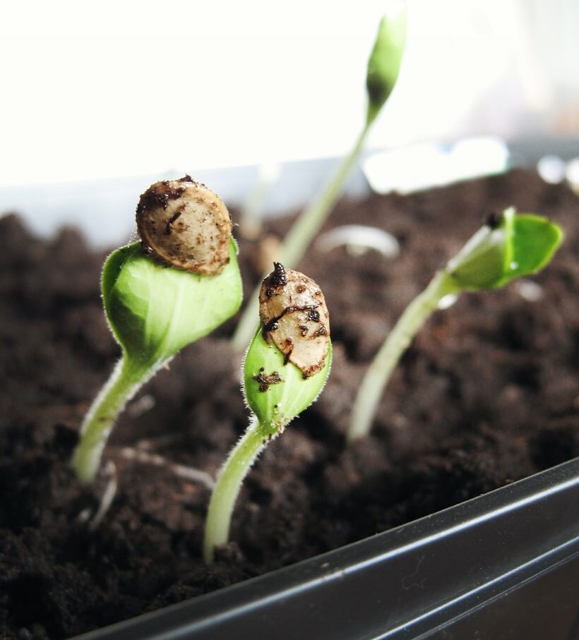 While you only need warmth and moisture to germinate seeds, they require light from above once they sprout. If the light source is too far away or from a window, plants will stretch towards the light and grow leggy. Also, baby plants need about 14 hours of sunlight per day, so daylight this time of the year is not long enough. Heat mats under seedlings help to ensure successful propagation and healthy roots.