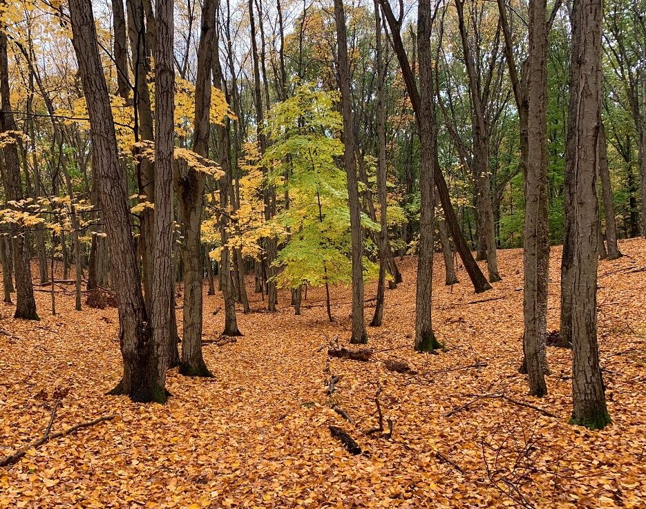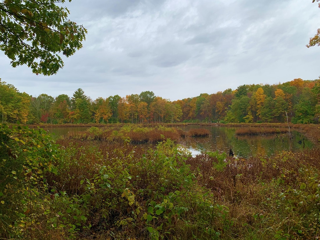 Beyond the hayfield trail, I made a right onto the Nature Trail, which meanders through the woods. The golden carpet of fallen leaves covering the path was soft to walk on. I stopped to listen to the raindrops’ cadence, taking in the miracles of the cycle of life—the rhythm of nature, the change in seasons.