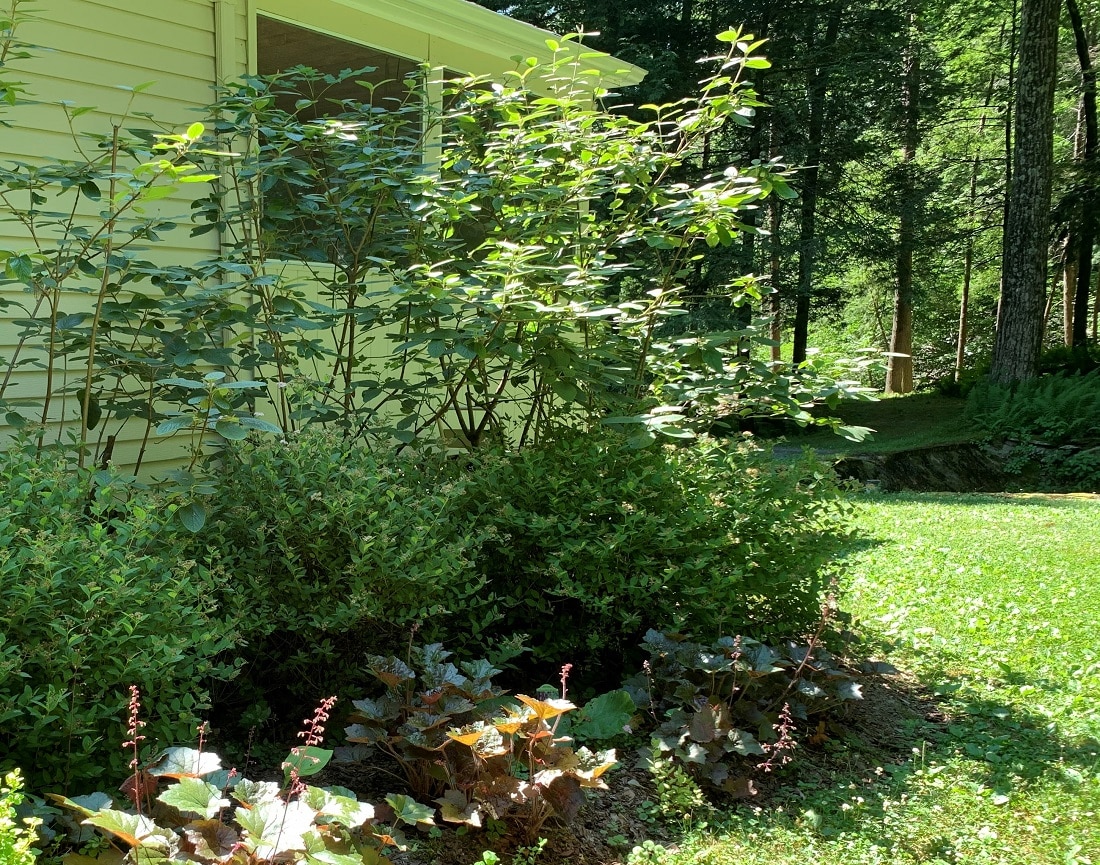 While planning a new foundation planting, Darren from Hackettstown, NJ, asked about pruning. With proper plant selection and placement, he won’t have to prune for years. Choose plants appropriate in size for the area, allowing space to grow. It’s a common mistake to plant young plants too close to the foundation. Find out the mature widths and heights, and space accordingly. For example, a shrub that matures 10 feet high and 5 feet wide should be planted 5 feet apart from the center of the plant. For trees, spacing them by half their width at maturity is a basic rule of thumb but not a catchall as there are variables such as growth rates. For a fast-growing tree, you may wish to space further. Or, if you are seeking a quick screen, plant closer together.