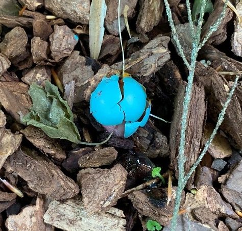 The color of their eggs inspired the Robins Egg Blue Crayola crayon. And Tiffany’s iconic blue box. A happy color. But a sad Sunday it came to be. The robins were gone. Half a blue shell was on the ground. Below it, the embryo of what was a new life. A heavy heart.
