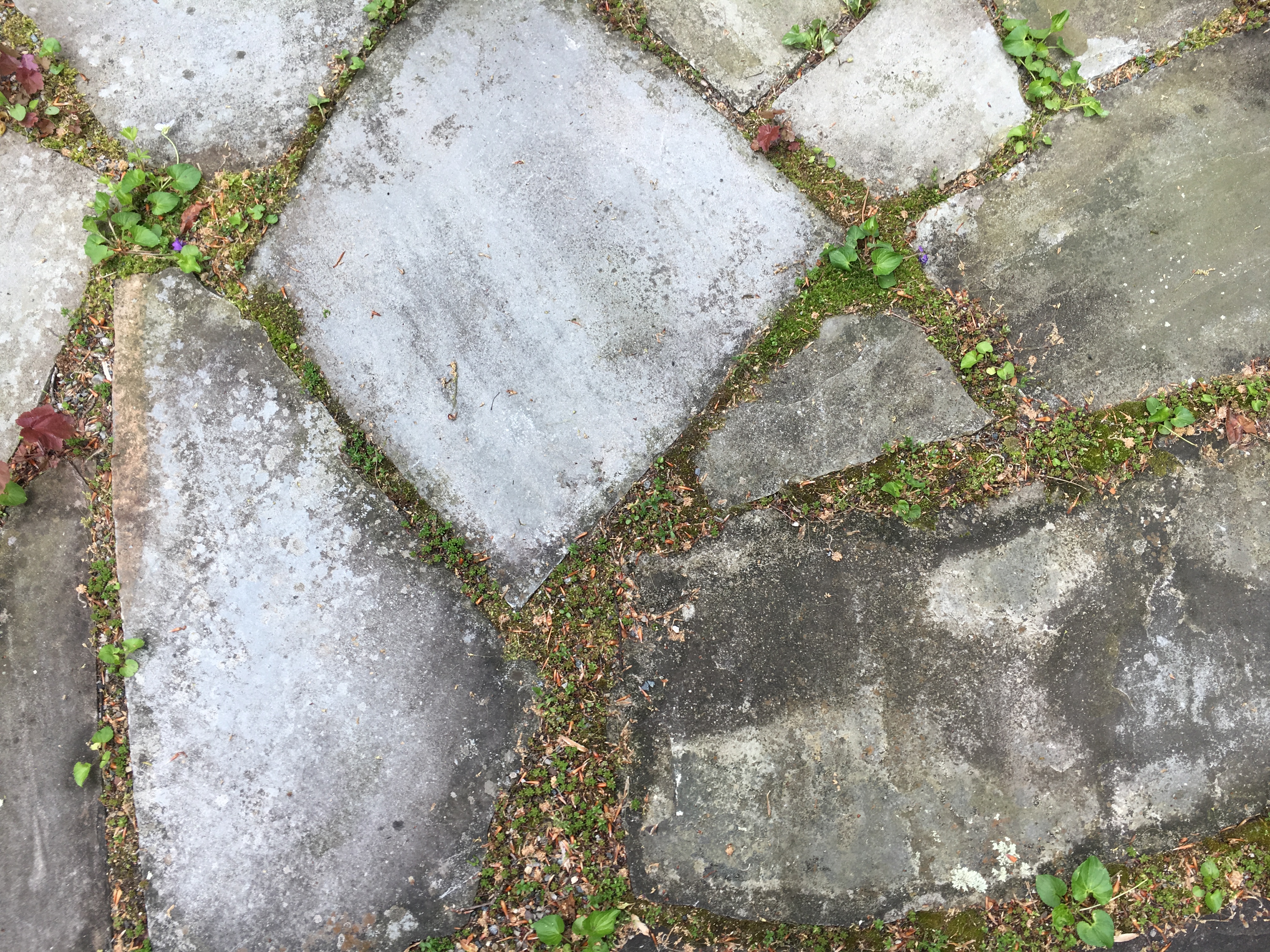 Since then, I discovered another technique and took it for a spin. Four tablespoons of baking soda (sodium bicarbonate) dissolved in a quart of warm water are safe on wood, concrete, and natural stone and won’t harm plants. And they say baking soda helps lessen the impact of powdery mildew and several other fungal diseases. An added benefit!