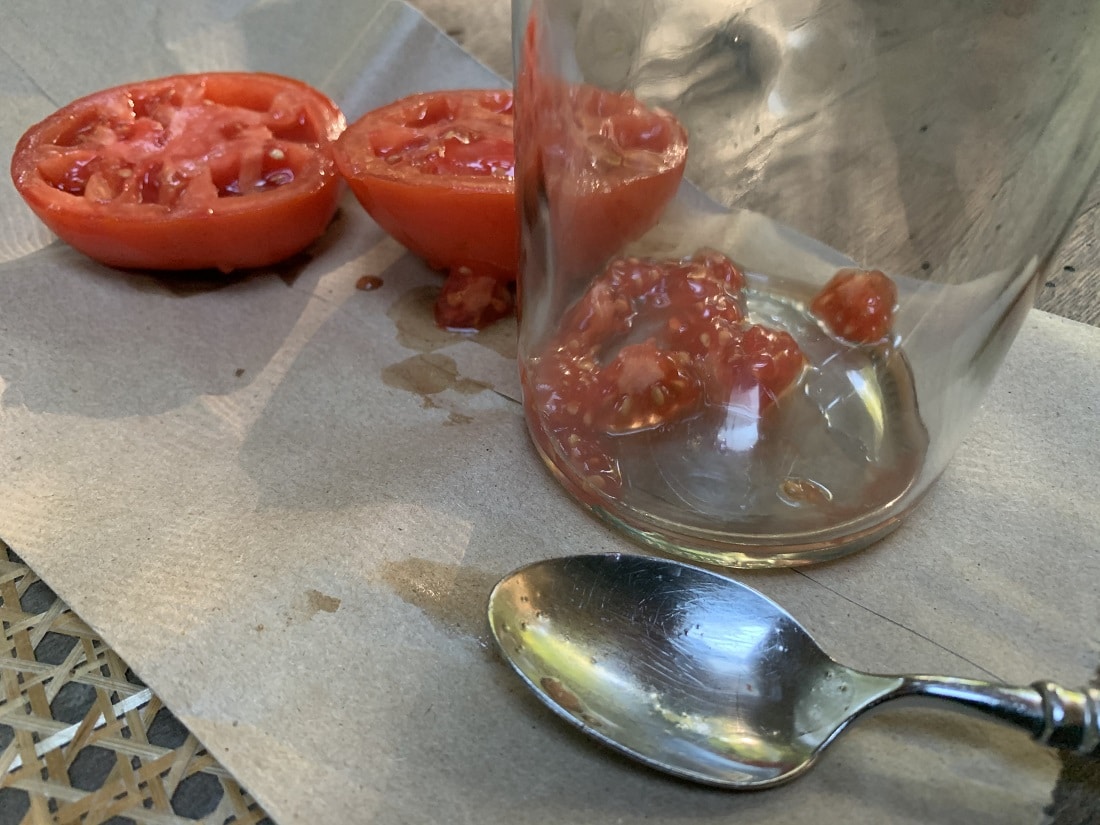 Some of the most straightforward vegetable seeds to save are tomato, peppers, beans, and peas. Once the tomato is fully ripe, scoop out the gooey center with the seeds and put them a jar with water. Swirl them around periodically for a few days to separate the gel from the seeds. Then pour the liquid away and rinse the seeds.