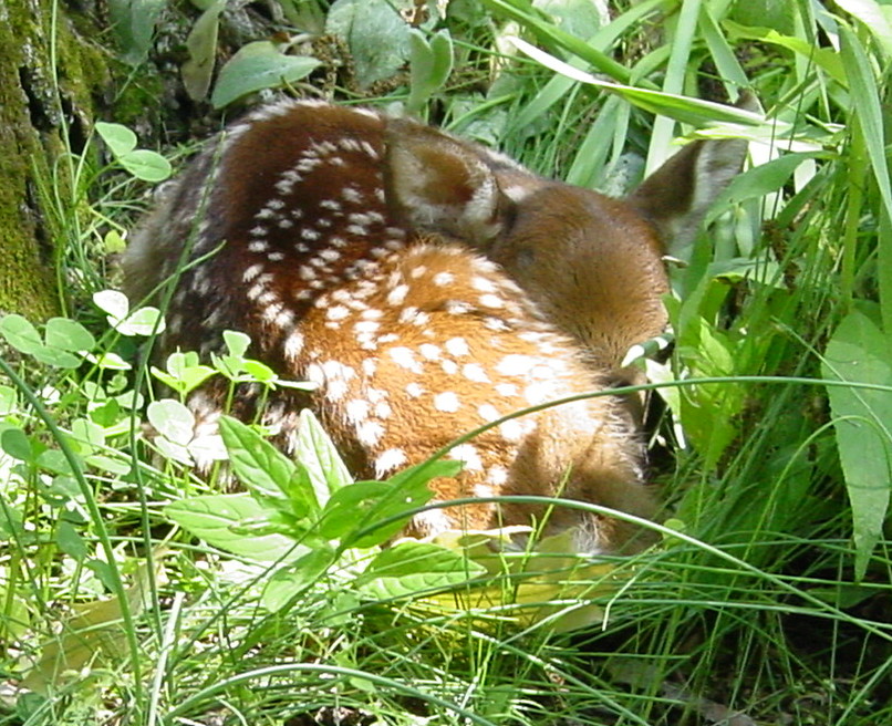 Mother Nature knows what she’s doing when it comes instilling the trust between Mom and baby. Mom leaves her fawn, often two fawns in different places, while she forages for food; typically for 4-6 hours at a time. For the first 5 days after birth, fawns lie still when approached and allow handling without resistance. But we, as gardeners, lawn cutters and responsible citizens, need to keep our hands off! Fawns are born scent-free which protects them from predators. Leaving a human scent on their body will put them at risk.