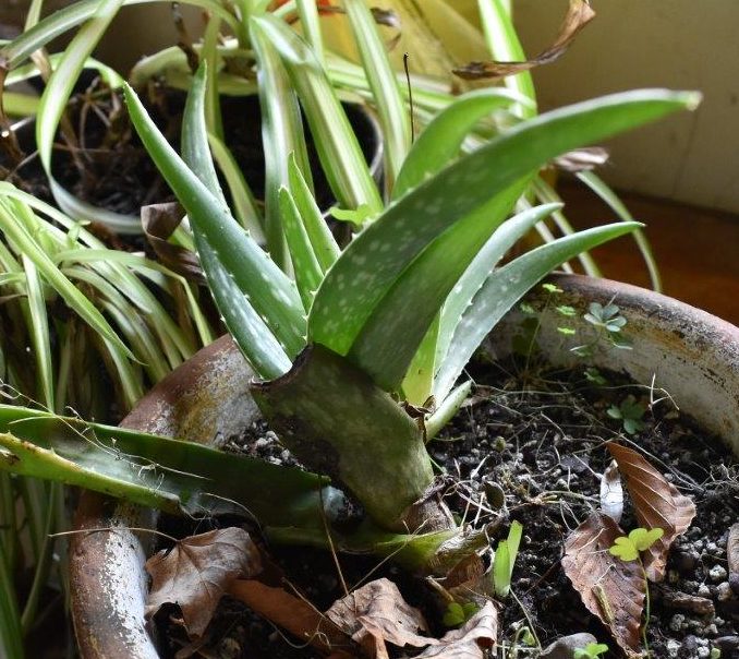 It was apparent the trio of aloes were root bound as the plastic pot was severely bulging. That’s an easy fix, but with severely yellowed foliage, the plants looked beyond saving. I always place new or hand-me-down plants away from others to be sure no critters or diseases came for a ride. It was early summer, so I quarantined the trio outside in a part-shady spot. That way, they could absorb the nitrogen benefits of rain.