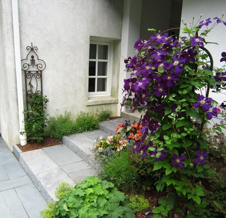 “I had little hope she would survive,” Pat said. “When Mary designed our new gardens, we gave the Clematis a new lease in a prominent place beside the addition. And survive and thrive she did! The beauty and ornamentation remind me of the first day we met, and it says, you’re home!”