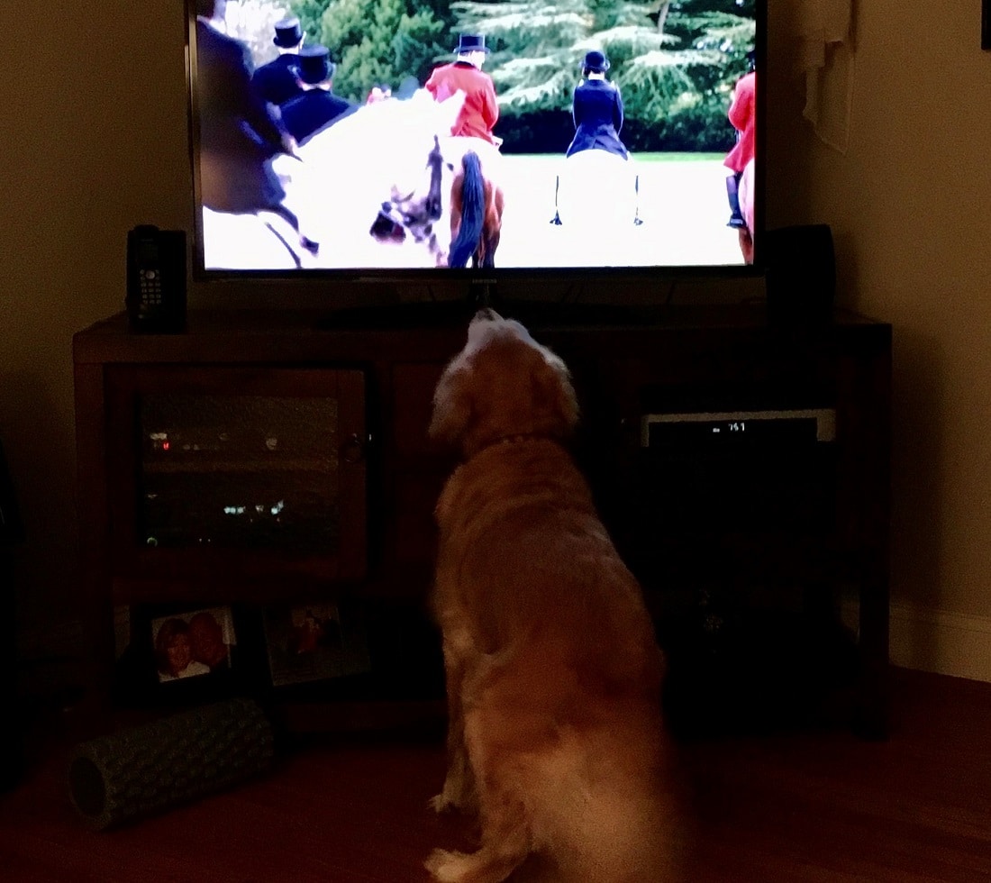 a golden retriever watching TV
