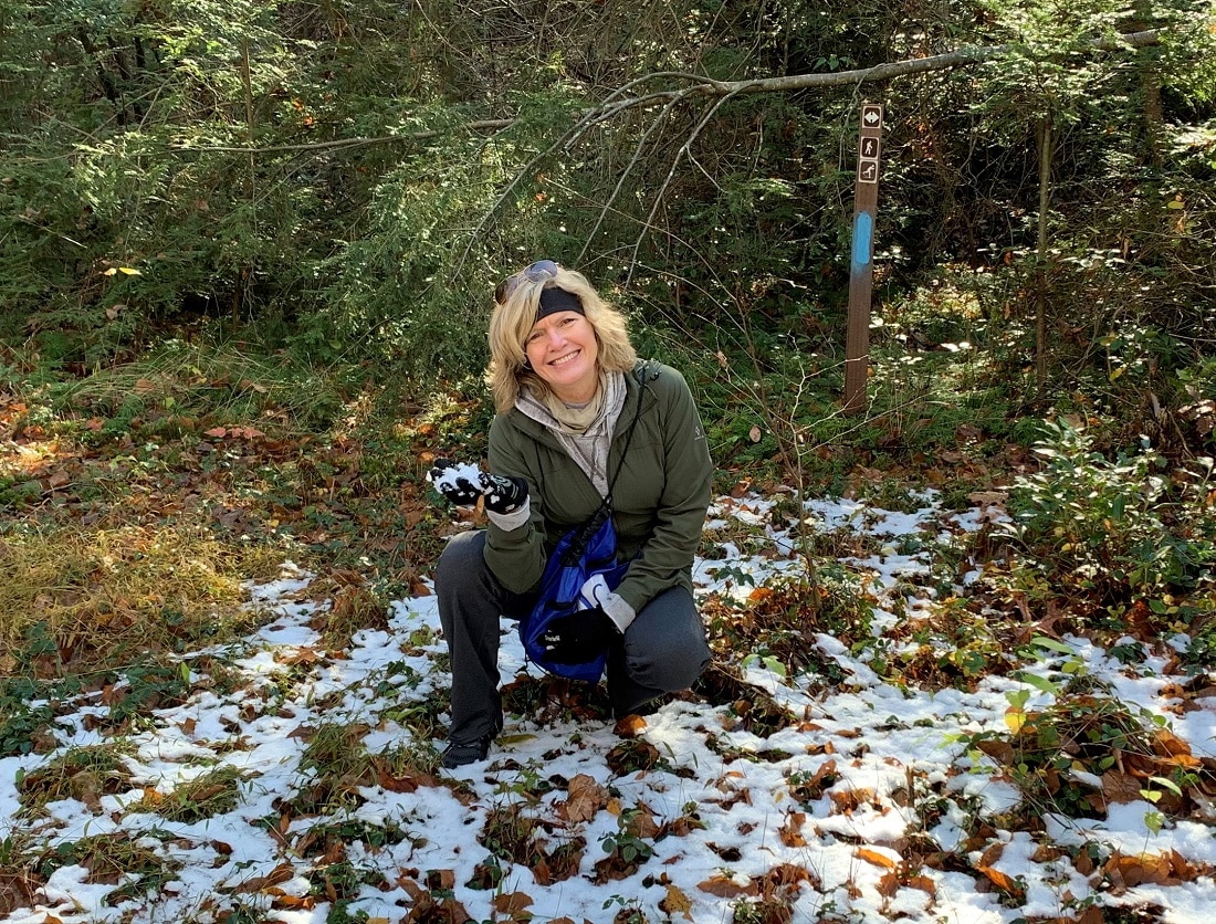 The 5K Grief Relief was a virtual event this year. Still, I gathered a few friends at Blue Mountain Lakes, part of the Delaware Water Gap National Recreational Area NJ/PA, for an in-person 5-K, following Covid protocols, of course. It was cold that day, and remnants from the light dusting of snow remained in pockets next to Hemlock Pond, where elevations are higher. I grabbed some snow and rubbed it on my cheeks, hoping that Frosty will be coming to town this year.