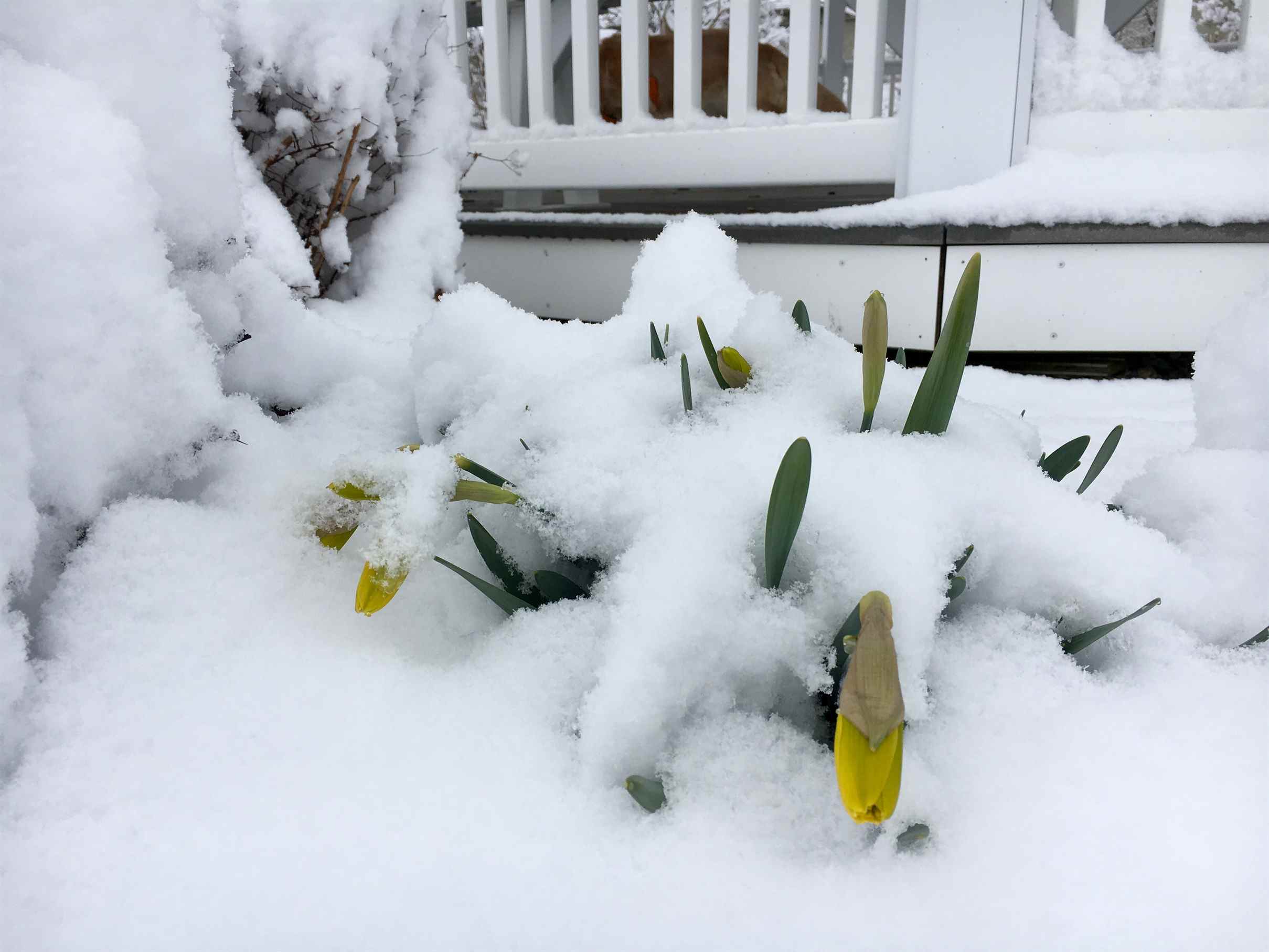 As I write you it’s Easter Monday when the tradition of egg rolling contests are taking place. But we woke to snow. Seven inches of it. An egg-shaped snowball could be charming…. Not to worry, it will melt quickly and the daffodils under the snow this morning will be just fine.