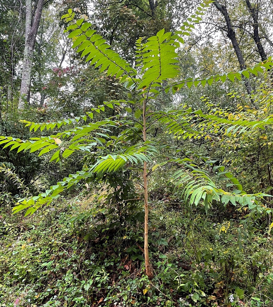 It spreads rapidly by seed and root suckers that can emerge as far as fifty feet from a parent tree. Plus, like black walnut, they produce chemicals that inhibit or prevent other plants from growing. It thrives in harsh conditions and crowds out native plants. By the early 1900s, Tree of Heaven lost its favor due to its invasive nature and odor when you crush the leaves or break stems.