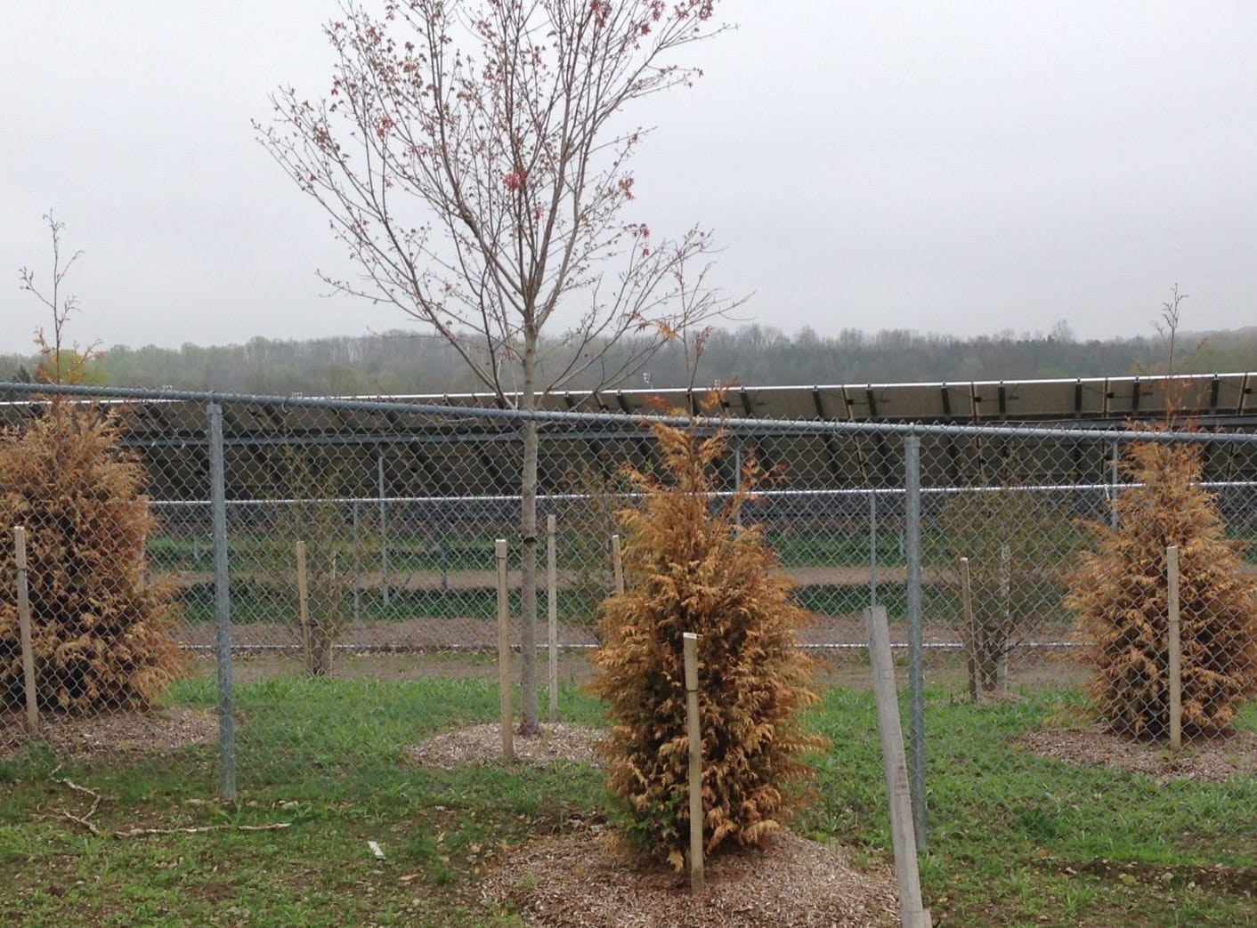 Have you noticed many evergreens look as though they were scorched this winter? John from Stone Church asked what to do about the brownish-red dry foliage, which is much worse on one side of his young white pines.